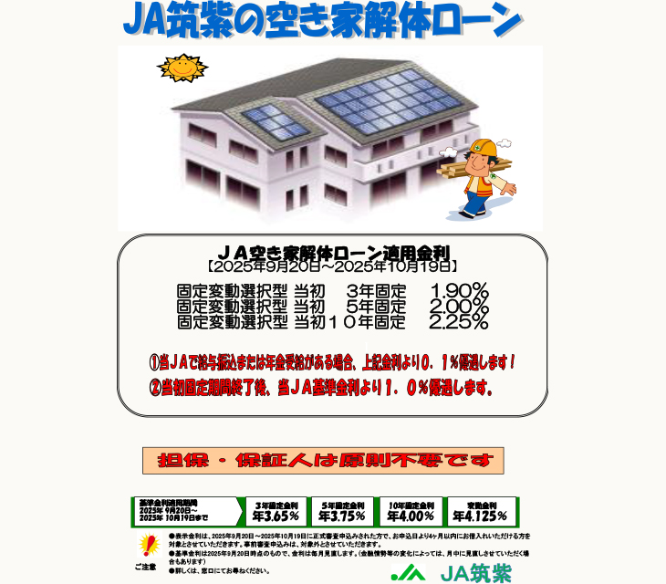 当初特約期間終了後、更新時に当JA基準金利より1.0%引き下げします。