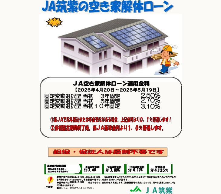 JA空き家解体ローン 金利