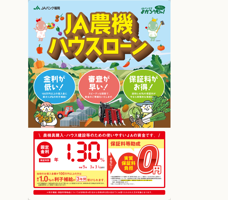 (ただし、福岡県農業信用基金協会の保証が必要です)