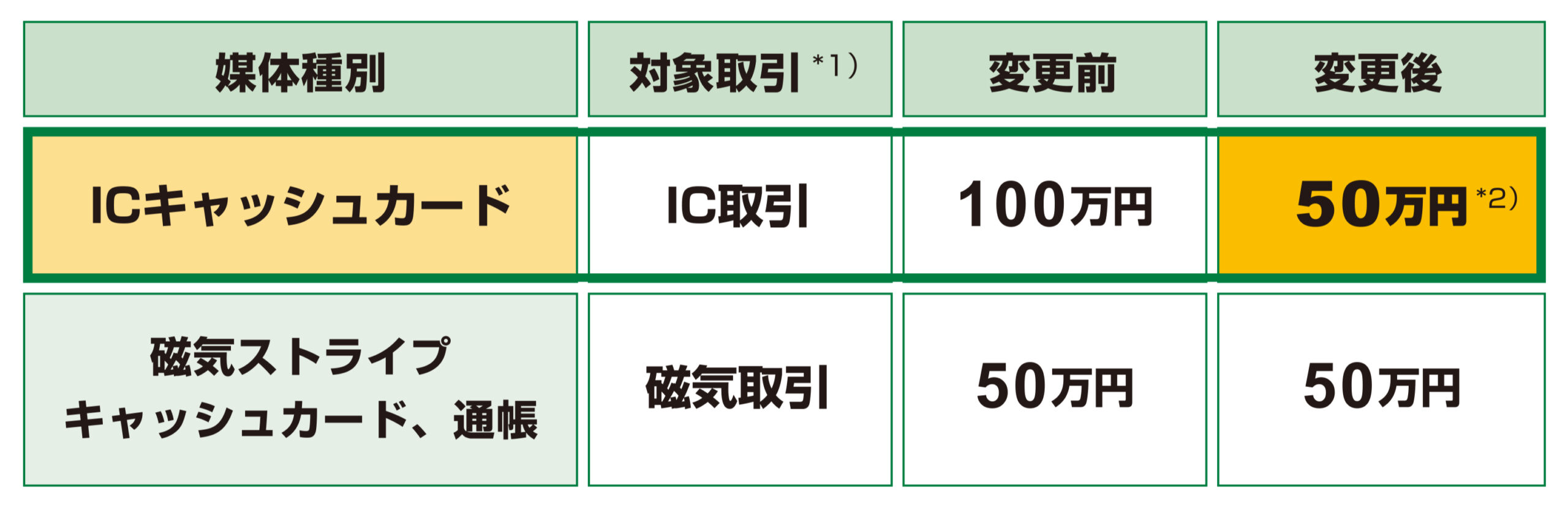 ATM利用限度額の変更のお知らせ